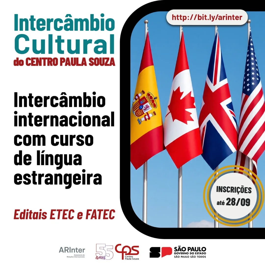 A oportunidade que você esperava para viver uma experiência internacional inesquecível chegou! O programa, promovido pela ARInter – Assessoria de Relações Internacionais do CPS, oferece bolsas de estudo para cursos de imersão em Língua Inglesa ou Espanhola aos(às) melhores alunos(as) dos Cursos Técnicos e Tecnológicos do Centro Paula Souza.
