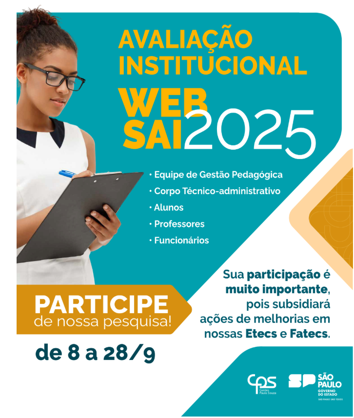 Avaliação Institucional WebSAI 2025: participe e ajude a melhorar as Etecs e Fatecs.